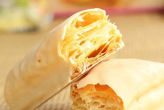 千層酥,是烘焙類點心,因烤好出后側面可見許多分層得名,口感酥酥脆脆、香濃甜美。根據不同品味做法種類繁多