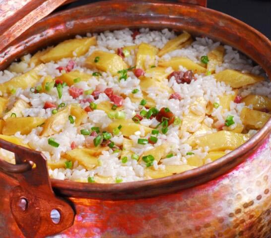 銅鍋洋芋飯飯也叫洋芋飯。洋芋飯是云南很多地方的主食之一,后來被游客發現,得以推廣。洋芋飯醇香可口,來盤云南的腌菜或野菜更是開胃,不用其它食物即為一頓豐盛的“大餐”。在云南撫仙湖邊坐在湖邊,一鍋用干柴煮的青魚+洋芋飯,讓你仿佛進入了人間仙境。