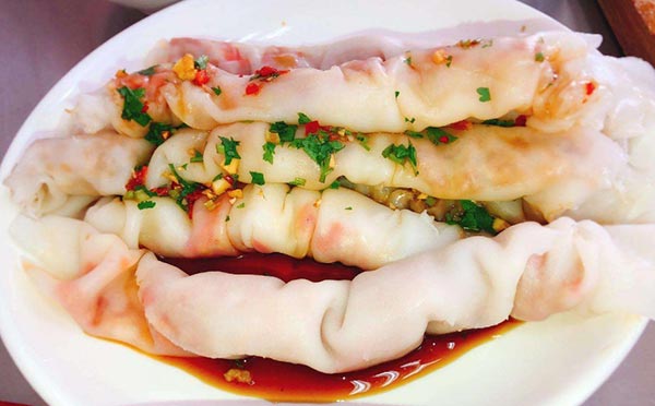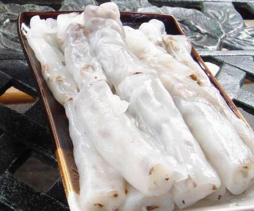 越南卷粉,先是用精選大米浸泡后磨或打成米漿,后加入適量米糊攪勻,再通過熱鍋蒸煮成薄薄的一塊塊園形粉片,接著用抹上花生油的專用竹刀快捷地從熱蒸蘢布上撈出來,并趁熱在粉片中加入諸如或木耳或芹菜或韭菜拌碎豬肉等各種炒熟的可口菜譜,很后人工把放了熟菜的粉片卷成粉筒,吃時在粉碗中加入調(diào)有適當(dāng)米醋、食油、醬類等配料,這樣的越南卷筒粉很有風(fēng)味,有的人一次吃上十根八根還想再吃。